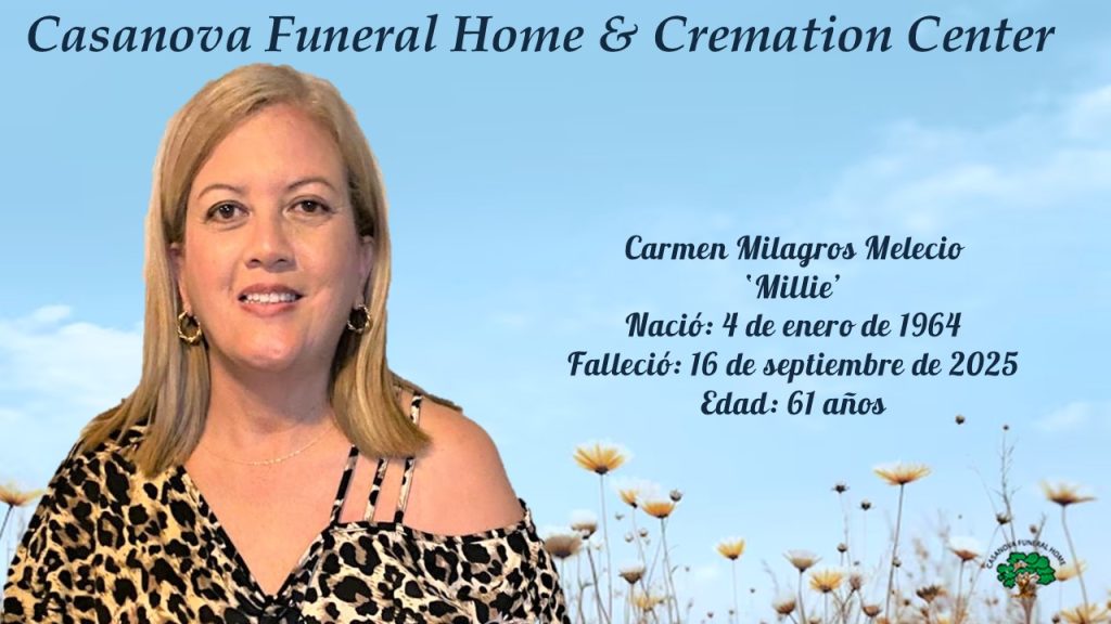 Carmen Milagros Melecio “Millie” septiembre 18, 2025 Casanova Funeral Obituarios 5 comments Nació: 4 de enero de 1964 Falleció: 16 de septiembre de 2025 Edad: 61 años Velatorio: 19 de septiembre de […] Leer más