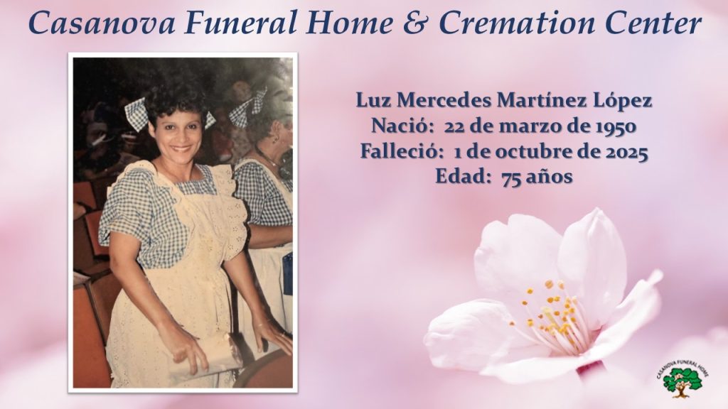 Luz Mercedes Martínez López octubre 4, 2025 Casanova Funeral Obituarios No comments yet Nació: 22 de marzo de 1950 Falleció: 1 de octubre de 2025 Edad: 75 años Velatorio: 4 de octubre de […] Leer más