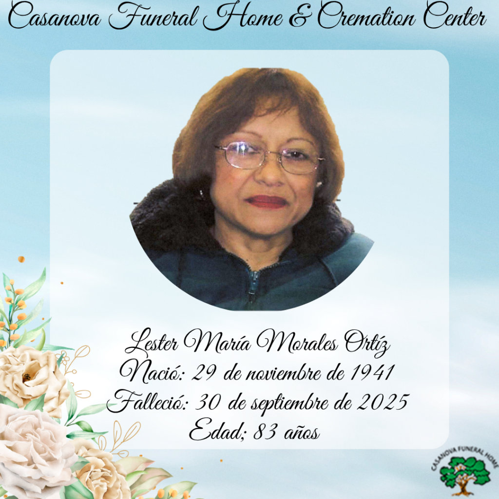Lester María Morales Ortíz octubre 2, 2025 Casanova Funeral Obituarios No comments yet Nació: 29 de noviembre de 1941 Falleció: 30 de septiembre de 2025 Edad: 83 años Sus restos serán cremados. No […] Leer más