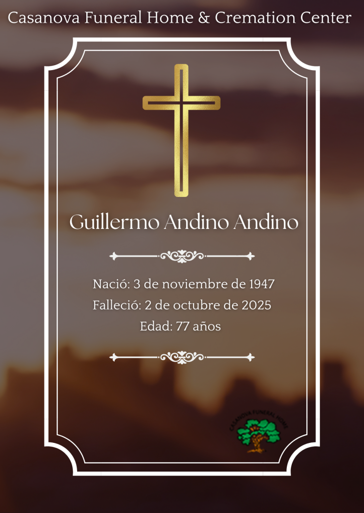 Guillermo Andino Andino octubre 3, 2025 Casanova Funeral Obituarios No comments yet Nació: 3 de noviembre de 1947 Falleció: 2 de octubre de 2025 Edad: 77 años Velatorio: 4 de octubre de […] Leer más